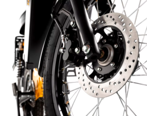 - 2 hydraulische Doppelkolben-3-mm-Scheibenbremsen (vorne und hinten)